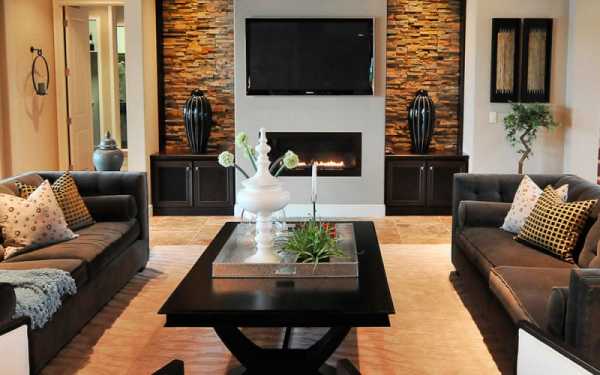 Светлый коричневый оттенок фундука задает спокойный эмоциональный фон и тоже помогает расширить помещение визуально. Красивый модный цвет для гостиных.