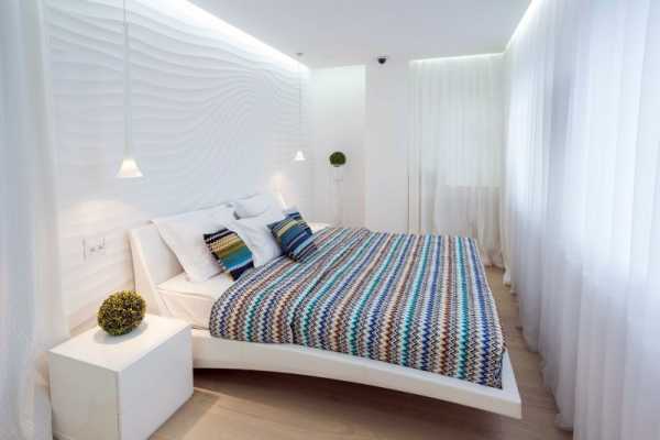 С цветом спальни важно определиться еще до ремонта. Дизайнеры рекомендуют использовать светлые тона, зрительно расширяющие пространство. Популярное решение – спальня в белом цвете. Отличное решение для практически всех современных стилей. Можно оформить спальню в привлекательном монохромном стиле, комбинируя белую отделку с черной мебелью.