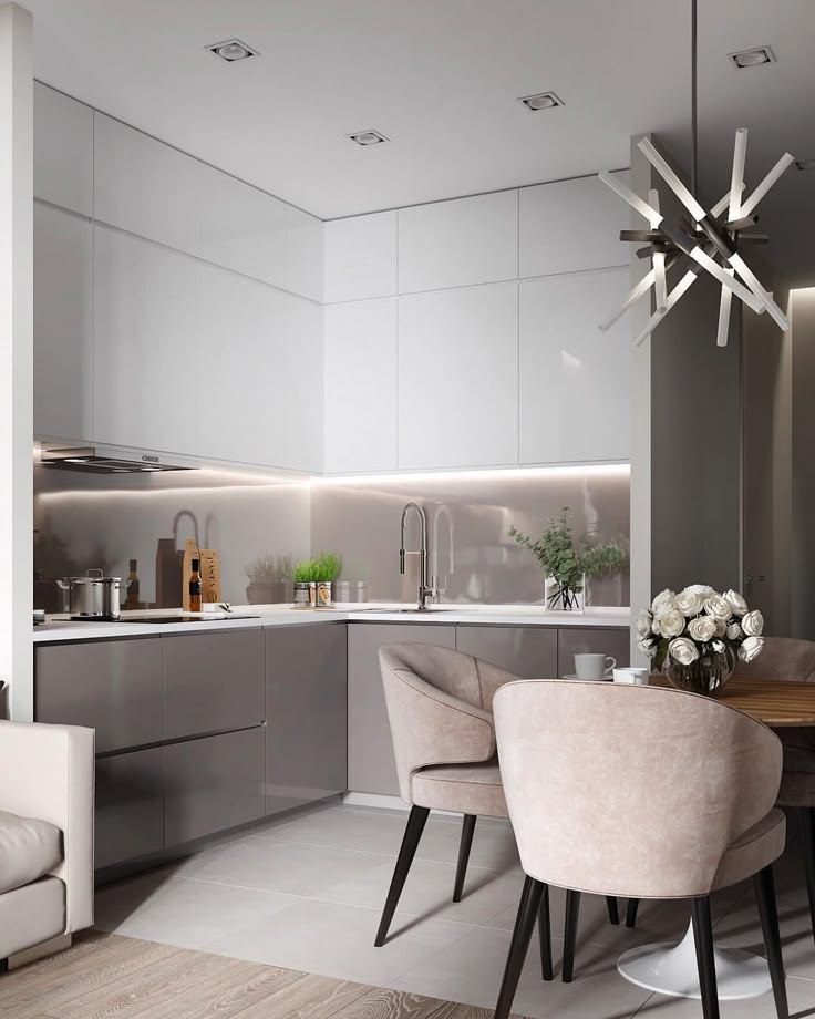 Маленькая кухня в современном стиле — это светлые оттенки фасадов и стен, визуально расширяющие пространство.