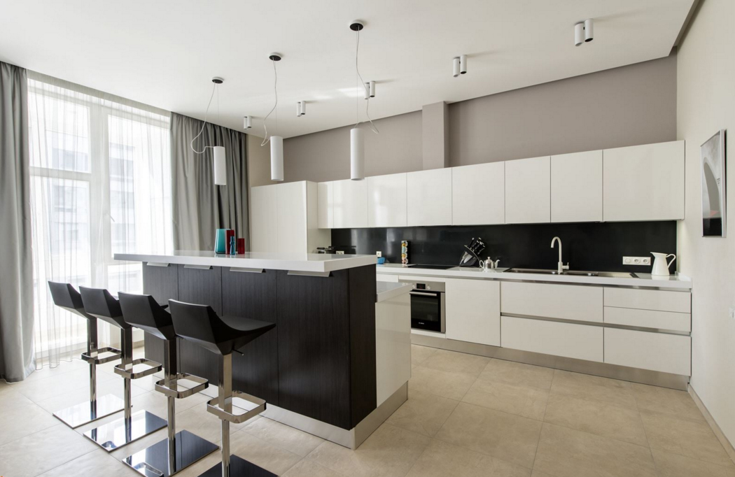 Еще один вариант выбора цветовой гаммы для кухни в современном стиле — это контрастные решения.