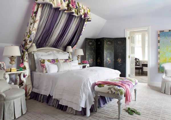 - В отличие от однотонных стен постельное белье, покрывала, шторы и абажуры могут быть самых красочных расцветок. Подбирая своеобразный комплект этих элементов декора можно за считаные минуты менять атмосферу комнаты.