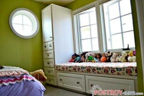 по подушкам и лежаком на подоконнике я сама это просила) но муж увидел и говорит, как Дети туда забираться будут) и как гипсокортоновый короб это выдержит, мол не вАРИАНт...нужно как то его подругому обыграть