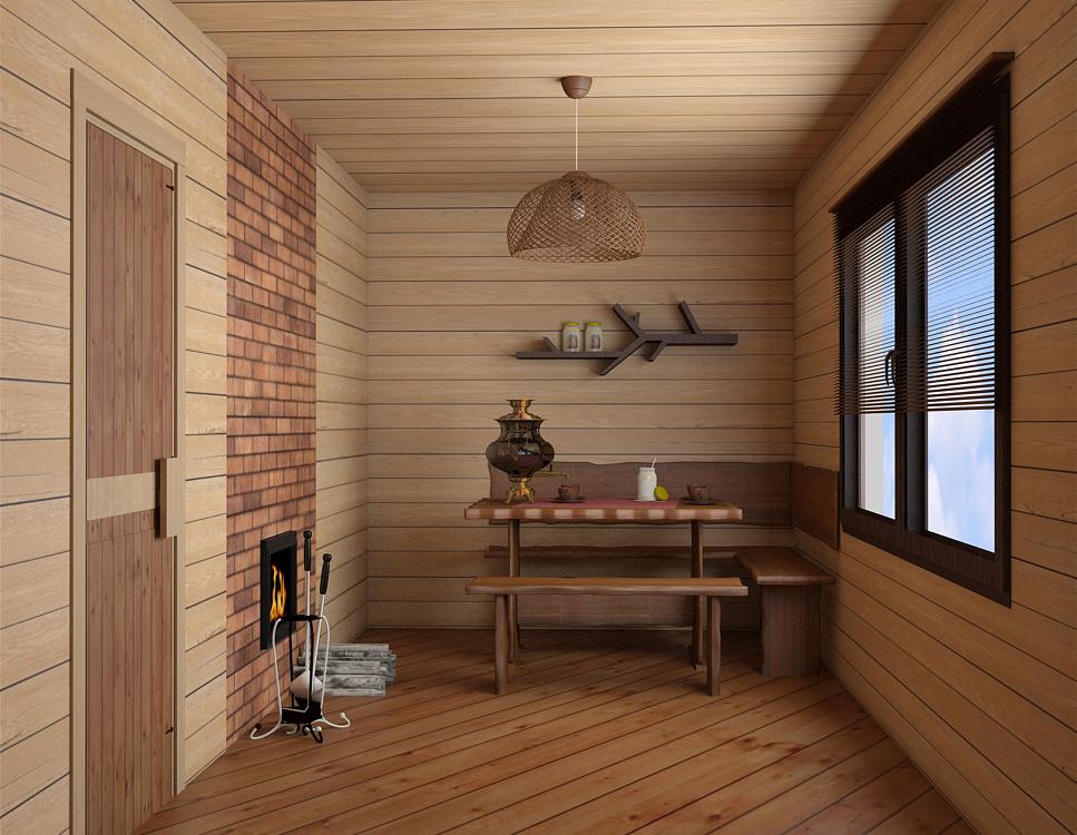 Дизайн комнаты отдыха в бане