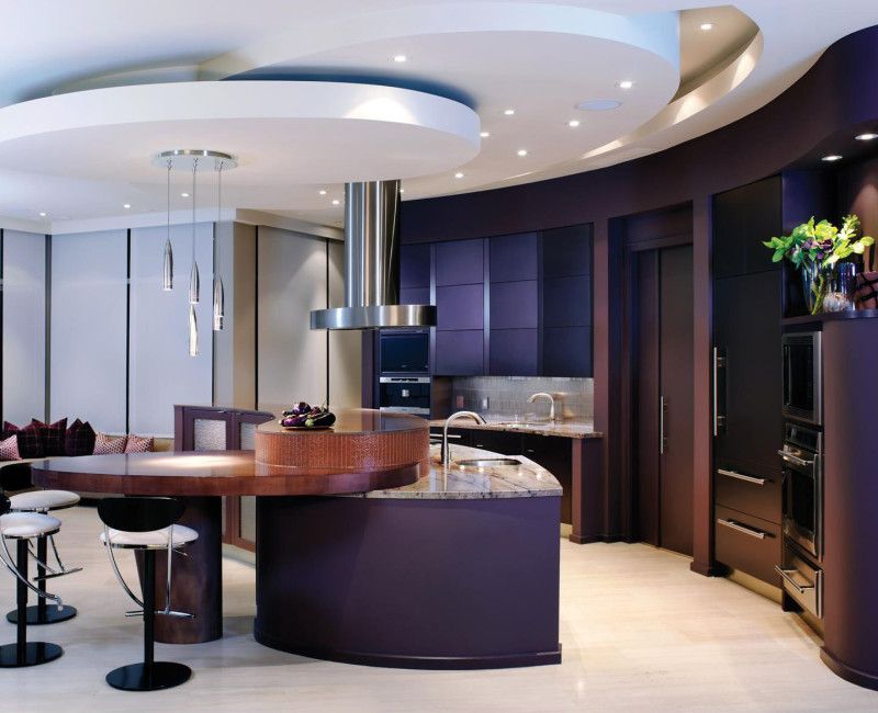 Самый красивый дизайн кухниСделать кухню непохожей на другие интерьеры можно, установив мебель полукруглой или других плавных форм. Но убедитесь, что такой гарнитур не будет мешать свободному перемещению по комнате.