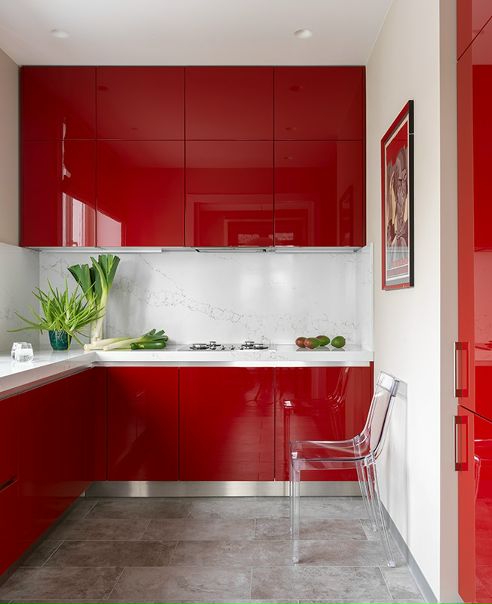 Маленькая красная кухня — 110 фото, дизайн