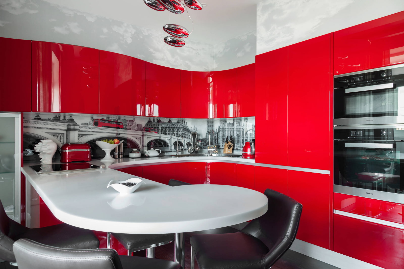 Интерьер современной кухни в черно-красных и белых тонах