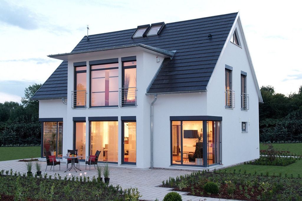 Проект дома с двускатной крышей — самый экономичный вариант. Конструкция идеально подходит для дома прямоугольной формы. Особенно хорошо подходит для дома с мансардой, так как окна, расположенные во фронтонах, способны обеспечить достаточный уровень вентиляции и освещенности в жилом чердаке.