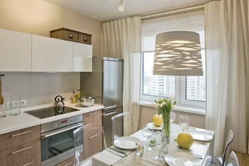 - повышенная функциональность – важно грамотно использовать все имеющееся пространство, например, при помощи встраиваемой техники или мебели-трансформеров, при необходимости можно использовать столешницы подоконников;