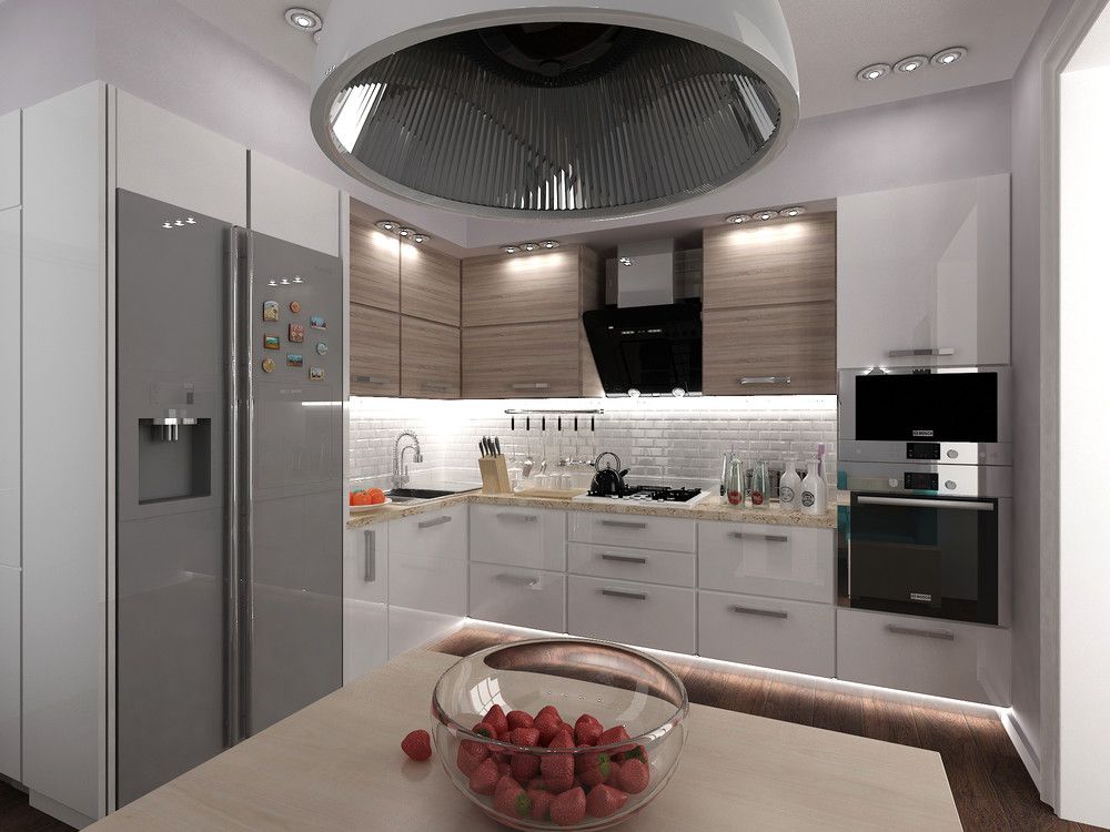 Считается, что угловая кухня является самой подходящей формой для площади 9 кв.