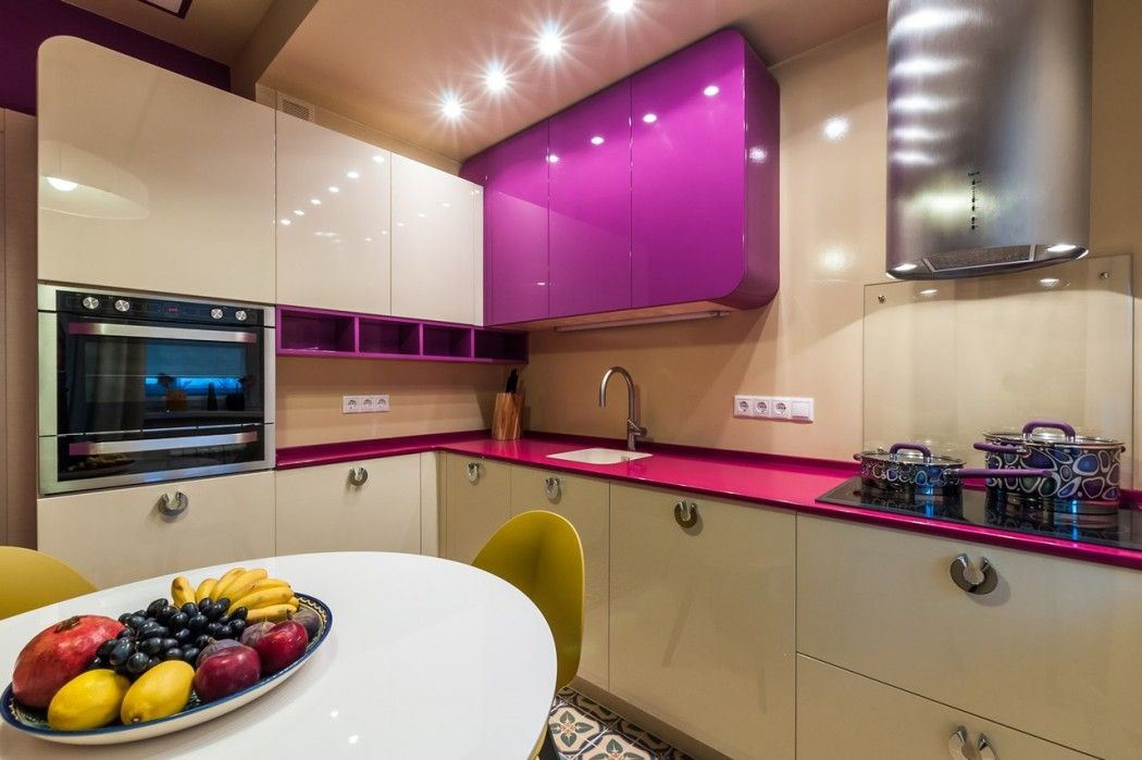 Холодный синий цвет, бирюзовый и сиреневый смотрятся на кухне не эстетично. Дизайнеры советуют отдавать предпочтение тёплым молочным и светлым оттенкам, приближенным к натуральному дереву, камням. Хорошо для кухни подходят и стальные цвета.