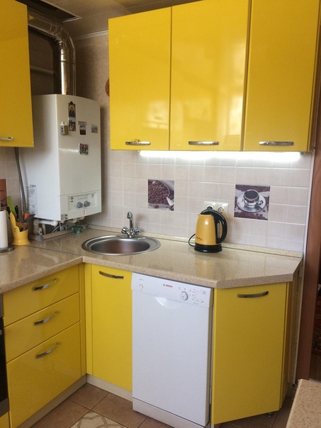 Дизайн кухни с колонкой: Маленькая кухня с газовой колонкой