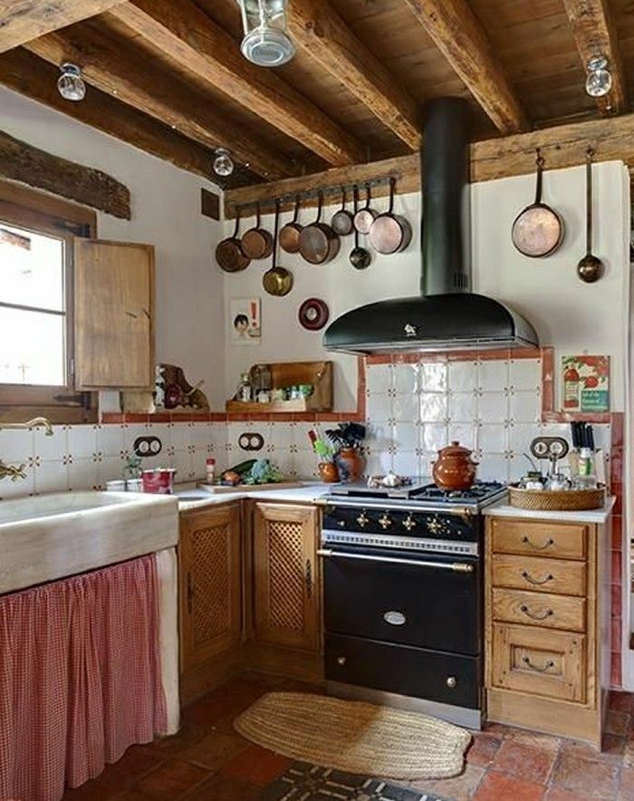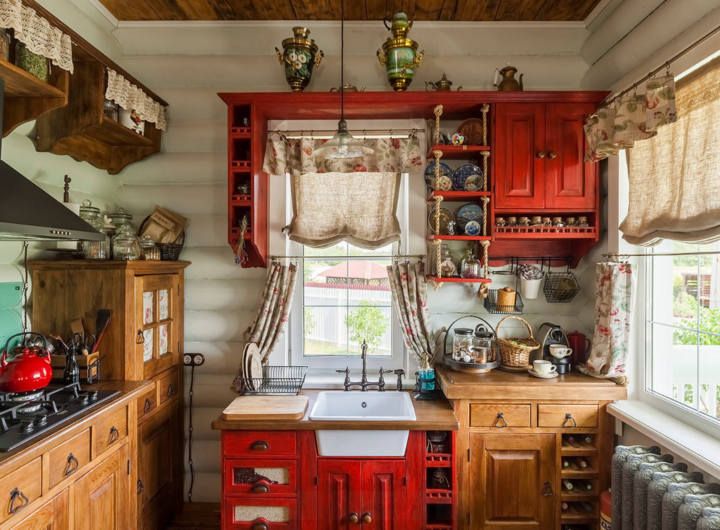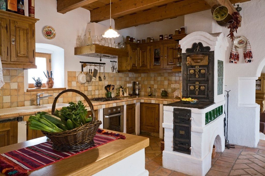 Интерьер кухни в деревенском стиле с винтажной и голландской кухней