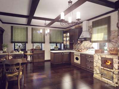 В частном доме кухня может являть собой просторное помещение, может быть миниатюрной. Нередко в домах кухни имеют неправильную форму, или являются проходными. Это все, бесспорно, влияет на дизайн помещения и стиль его оформления.