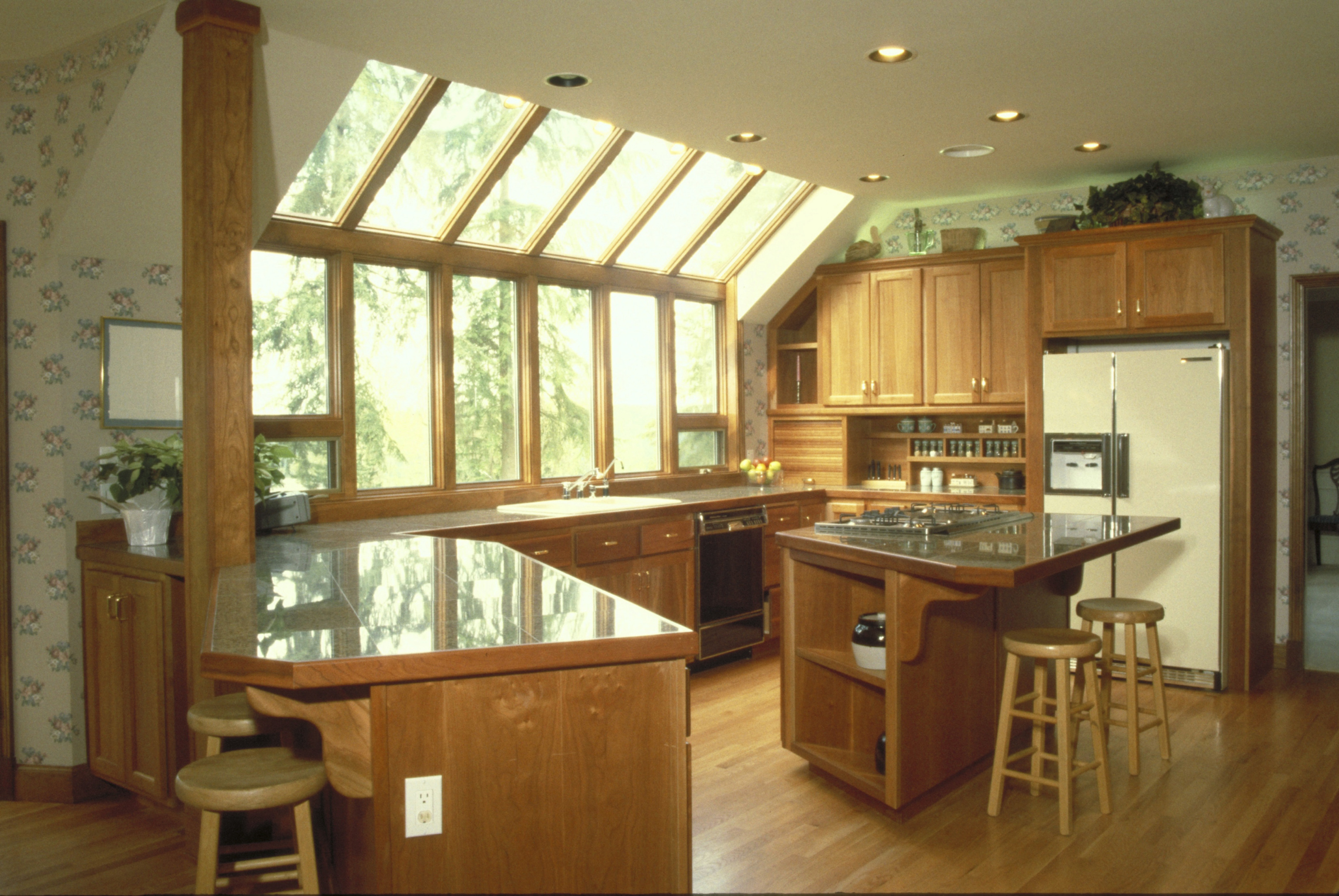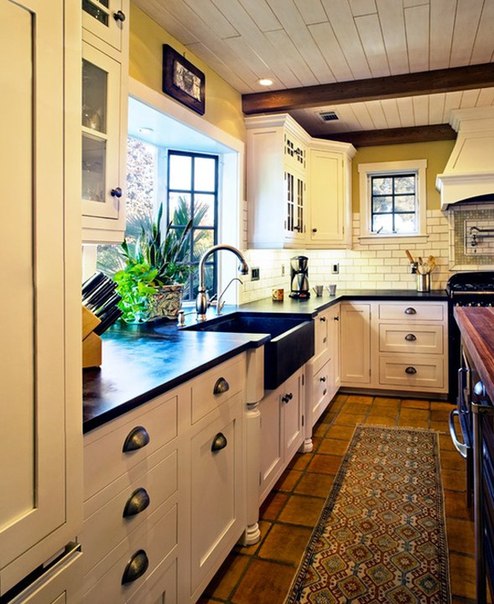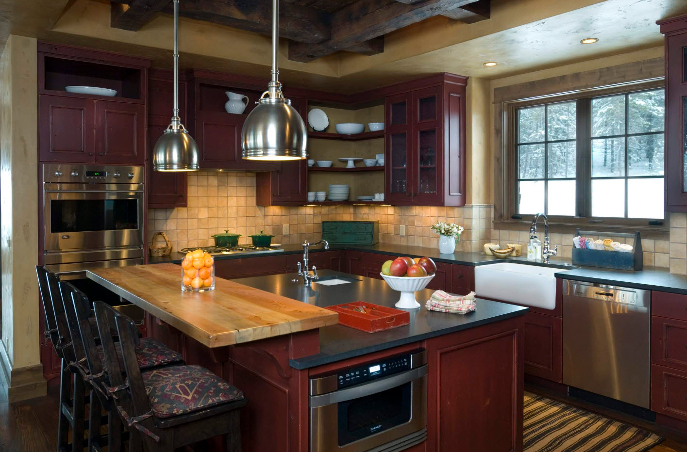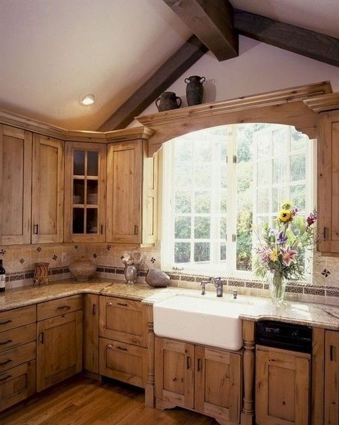 - В большинстве случаев загородная кухня имеет пару окон, что дает больше простора для планировки и дизайнерского оформления.
