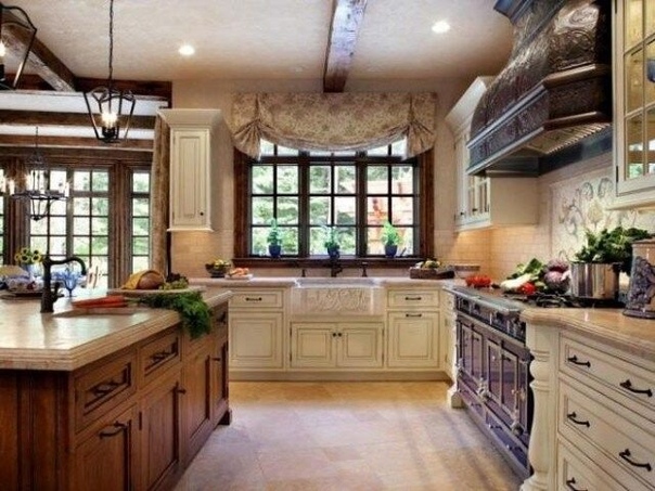 Кухня в старинном стиле в частном доме — довольно распространенное решение
