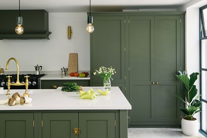 У Грина определенно есть момент прямо сейчас. От охотничьего до оливкового, зеленый набирает популярность в каждой комнате дома, но мы не можем насытиться им на кухне. Зеленый цвет, олицетворяющий обновление, омоложение и энергию, — это больше, чем преходящий тренд. Хотя он придает кухне современный вид, он также может быть в равной степени традиционным и классическим.