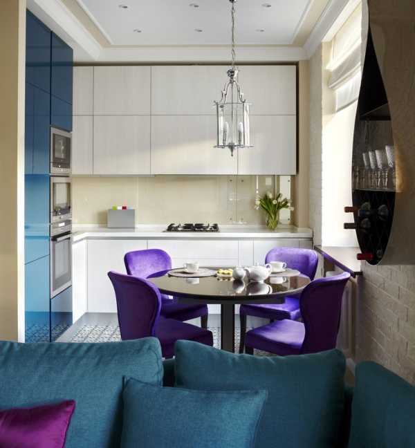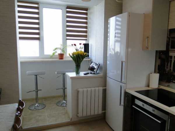 Хорошим вариантом станет объединение пространства, которое позволит увеличить площадь. Холодильник при этом, можно вынести на балкон.