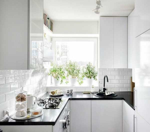 - Ставим белую кухню, красиво обыгрываем подоконник.