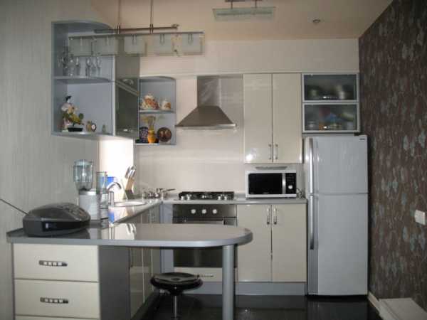 Техника и кухонный гарнитур в кухне 5 кв.м.