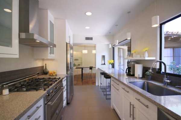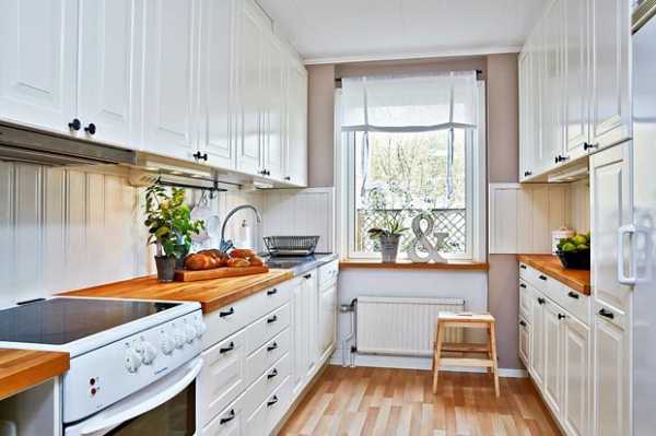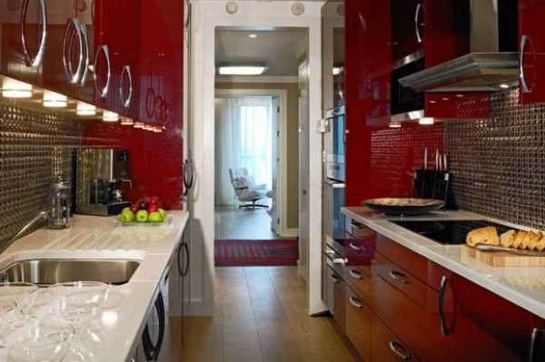 Наиболее востребованным и подходящим вариантом такой кухни является так называемая двухрядная планировка.