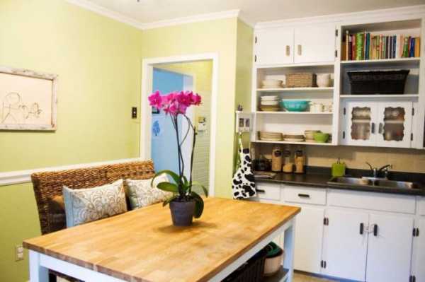 Не стоит забывать о том, что лучше использовать общий фон для кухонного помещения. Светлые оттенки помогут зрительно увеличить общее пространство, при этом не разделяя его на несколько частей.
