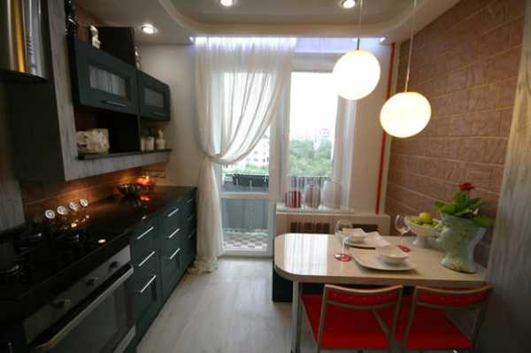 Дверной проем между кухней и балконом можно расширить и сделать его арочным, что придаст помещению особый шарм