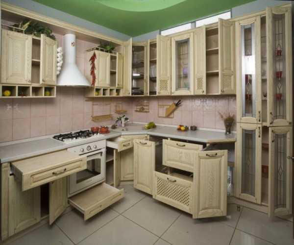 Для экономии площади помещения очень часто применяют угловые кухни из дерева. Такая планировка позволяет с пользой задействовать каждый сантиметр пространства.