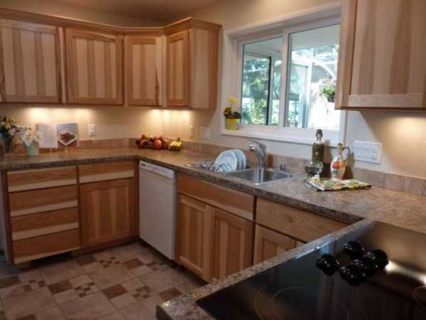 Кухонный гарнитур, выполненный из светлого дерева, отлично подойдет для обустройства кухни небольших размеров. Он визуально увеличит помещение, сделает его более светлым и просторным. Однако необходимо помнить, что ухаживать за такой мебелью придется более тщательно, так как светлой поверхности будут заметны все мелкие царапины и всевозможные загрязнения, которых на кухне просто не избежать.