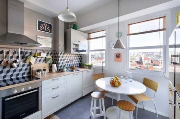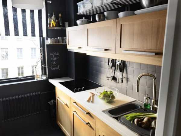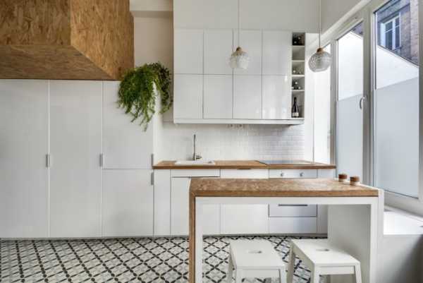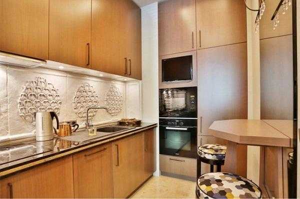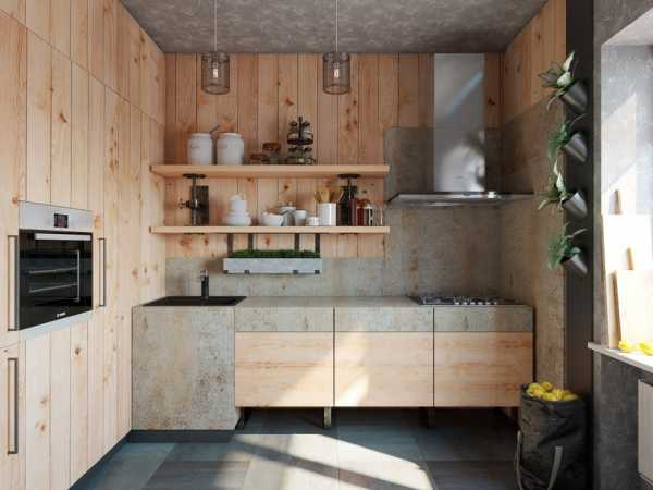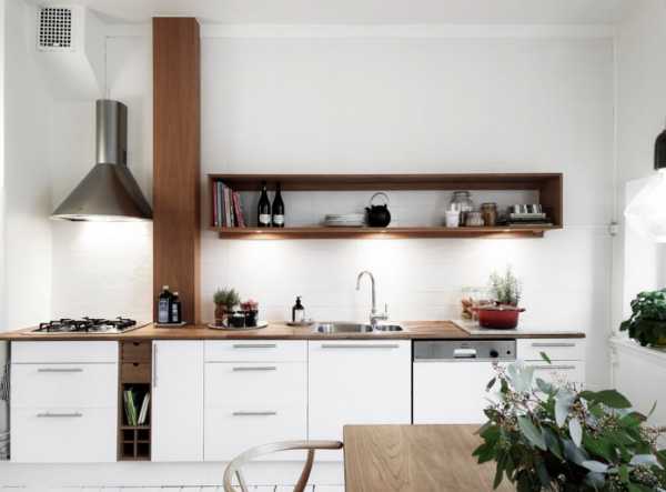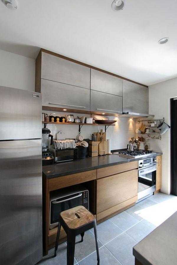 Маленькая кухня с использованием дерева и интересных решений