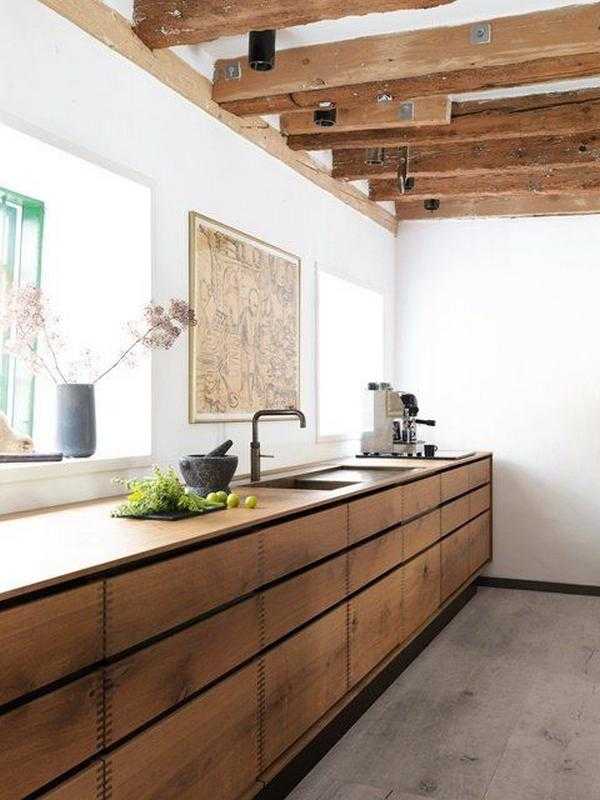 Дерево в интерьере кухни — 50 фото, полезные советы специалистов