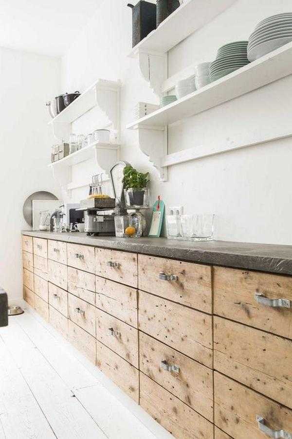 На фото: потертое дерево в интерьере кухни под старину