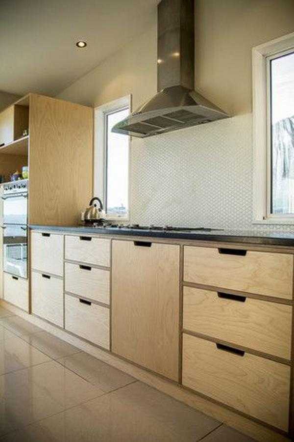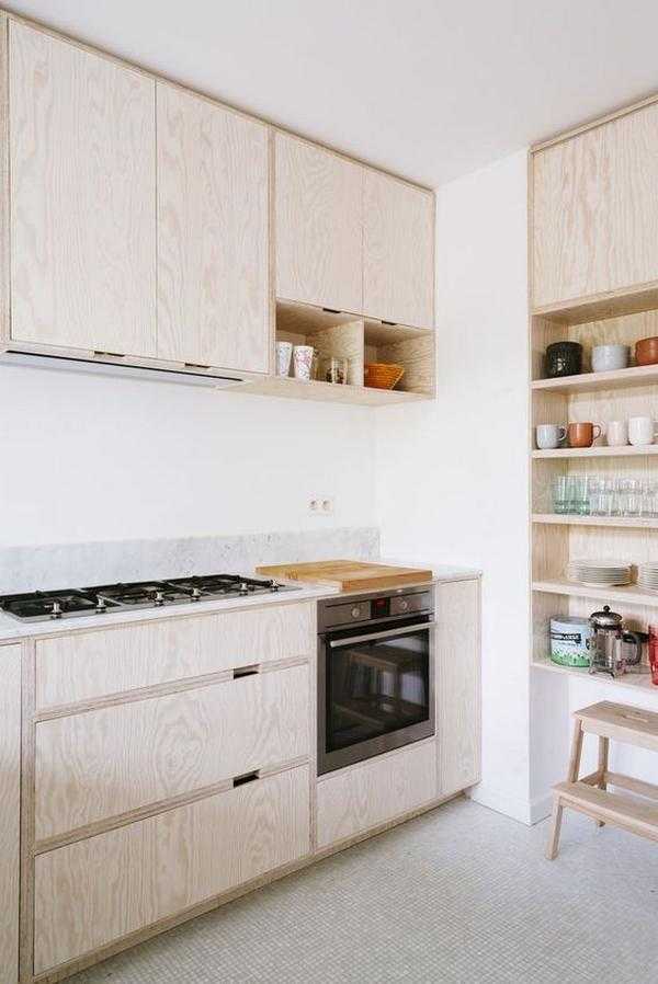 На фото: светлая деревянная кухня в стиле минимализм