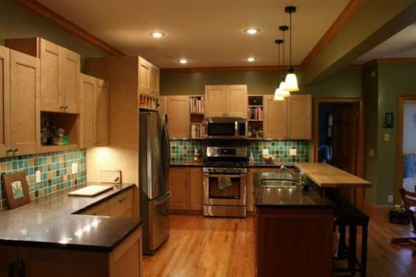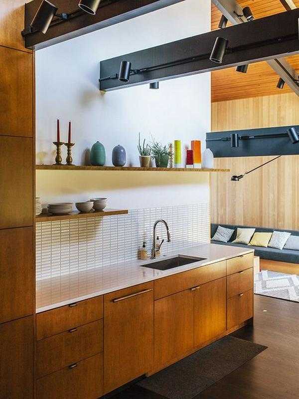 Организация освещения на деревянной кухне