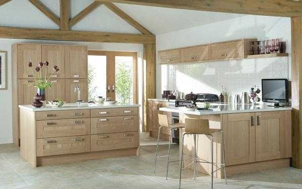Светлое дерево в интерьере кухни