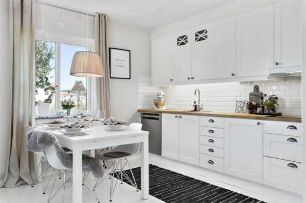 Белый цвет является универсальным, нарядным и повседневным одновременно. Он подходит к любому стилю и заставляет кухню выглядеть по-разному в зависимости от цвета и вида декора.