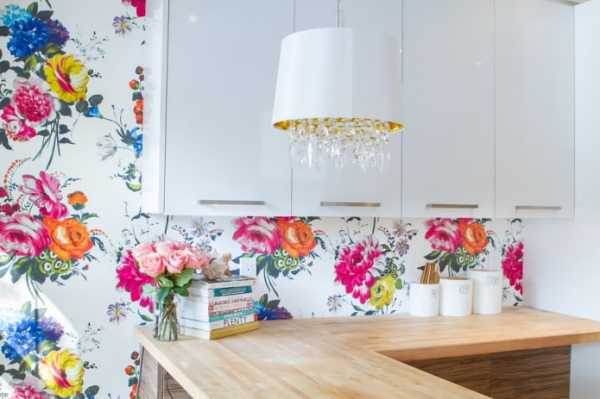 Обои могут быть однотонными или с дизайном. Лучше выбирать виниловые обои на флизелиновой основе, которые можно протирать влажной тряпкой без вреда для цвета и текстуры обоев.