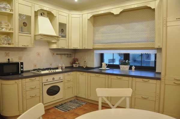 В кухне, интерьер которой выполнен в средиземноморском стиле, очень гармонично будут выглядеть длинные шторы из легкого шелка, также в светлых тонах. Украшением классического интерьера станут тяжелые портьеры из атласа, бархата, шелка. Также можно подобрать изящную тюль из органзы, струящуюся вниз многочисленными складками.