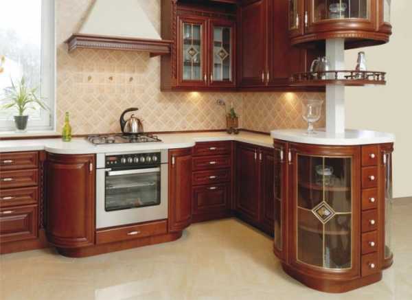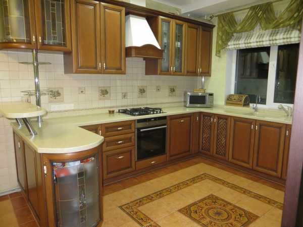 Угловая планировка деревянной кухни