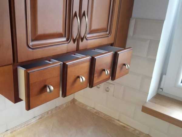 Различные напольные и навесные шкафчики в углу гораздо глубже обычных шкафов.