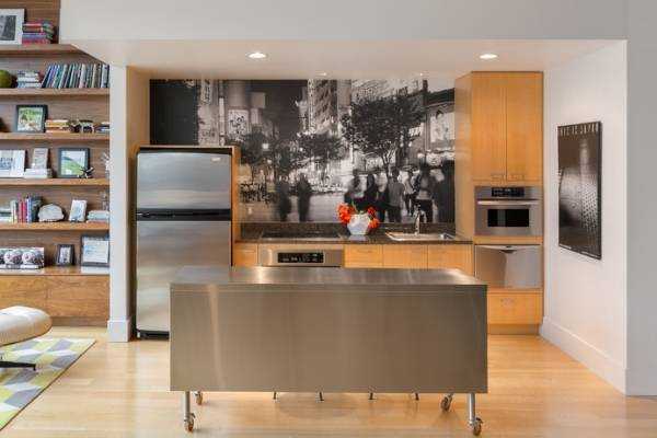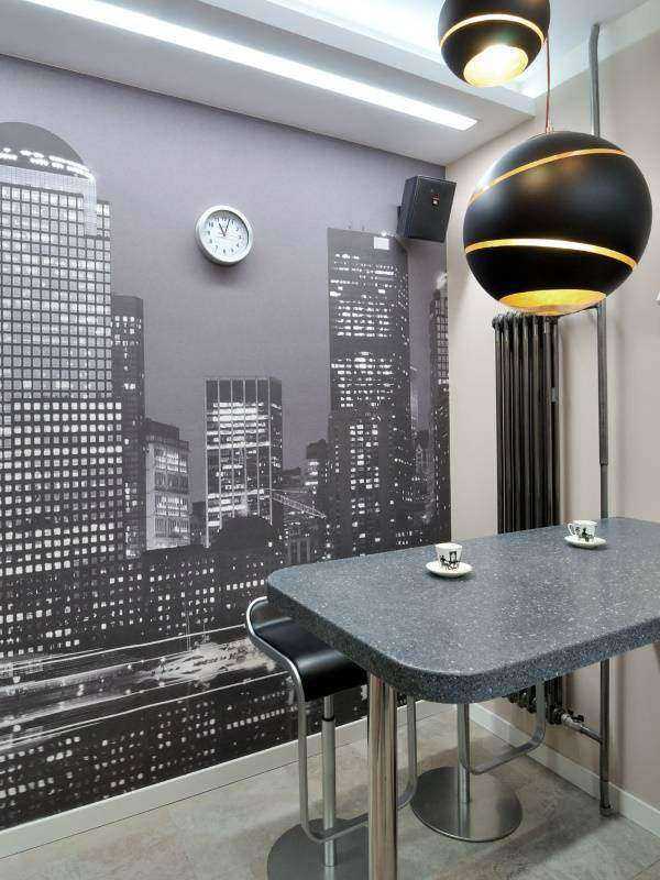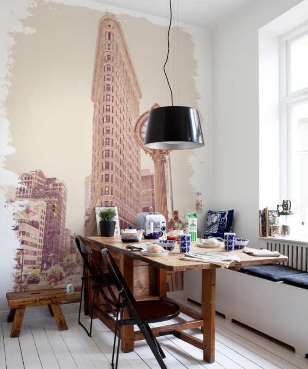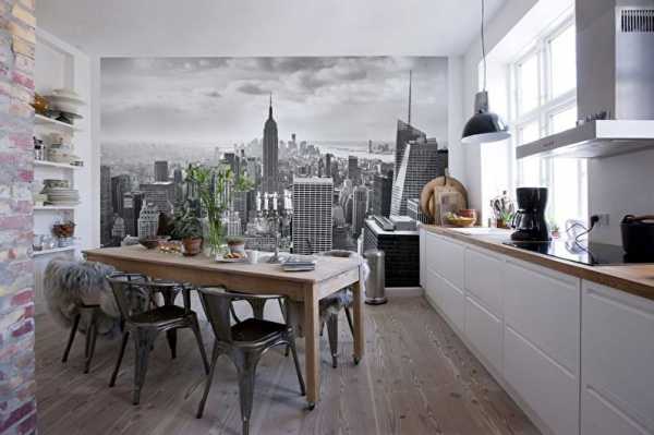 Любители оригинальных современных интерьеров зачастую отдают предпочтение урбанистической тематике. Изображения крупных мегаполисов или старых городов с их улочками и двориками лучше всего подойдут для этих целей. Кухню украсит практически любой сюжет. Главное, чтобы он вызывал положительные эмоции. В столовой можно использовать фотообои с изображением, вызывающим аппетит. Это могут быть уютные кофейни Парижа, площади с витринами продуктовых магазинов.