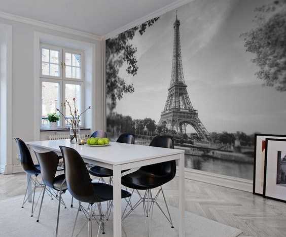 Для создания эффектных креативных интерьеров используют фотообои, выполненные в двух цветах — черном и белом. Особенно это актуально для ретро стиля. Такие изображения наиболее глубоко проникают в сознание, ведь взгляд не отвлекается на яркие пятна, разнообразие цветовой гаммы.