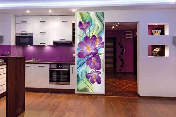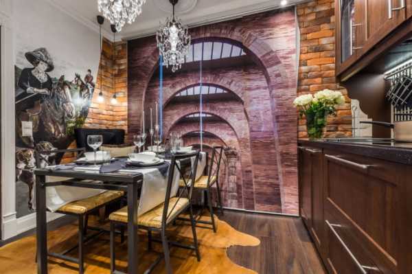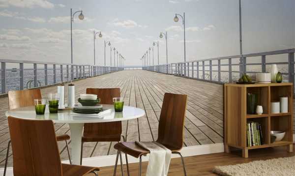 - с помощью фотообоев на кухню с 3d рисунком можно создать оригинальное оформление;