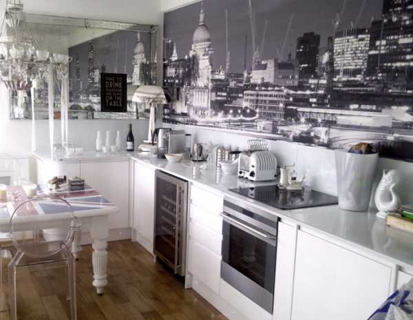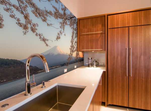 Модным стало оформлять при помощи фотообоев кухонный фартук