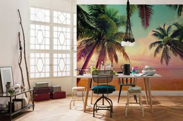 Фотообои, имитирующие вид из окна, дарят интерьеру своеобразный колорит. Позволяют визуально увеличить пространство. Великолепный закат, цветущий луг с одуванчиками, парк с экзотическими деревьями — все это можно ежедневно видеть из импровизированного окна. С помощью таких фотообоев легко скрыть недостатки помещения, убрать темные зоны, добавить интерьеру открытости.