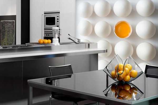 Следует знать, что трехмерный эффект становится заметным только с дальнего расстояния и под определенным углом. Поэтому объемные рисунки не рекомендуется использовать в квартирах с маленькой кухней.