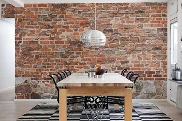 Фотообои для кухни должны сочетаться не только с предметами обстановки. Важна их гармония с основными материалами, используемыми для отделки стен. Высокий эстетический эффект достигается при комбинировании материалов. Благодаря этому приему можно создать нужные пространственные иллюзии и расставить акценты. Разделить помещение на функциональные зоны — столовую и рабочую.