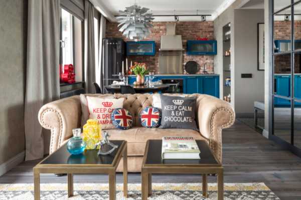 ΠΡΠΎΡ ΡΡΠΈΠ»Ρ Π»Π΅Π³ΠΊΠΎ ΡΠ·Π½Π°ΡΡ ΠΏΠΎ Π³ΠΎΠ»ΡΠΌ ΠΊΠΈΡΠΏΠΈΡΠ½ΡΠΌ ΡΡΠ΅Π½Π°ΠΌ, ΠΎΡΠΊΡΡΡΡΠΌ ΠΊΠΎΠΌΠΌΡΠ½ΠΈΠΊΠ°ΡΠΈΡΠΌ, ΠΎΠ±ΠΈΠ»ΠΈΡ ΠΌΠ΅ΡΠ°Π»Π»Π° ΠΈ Π³ΡΡΠ±ΠΎ ΠΎΠ±ΡΠ°Π±ΠΎΡΠ°Π½Π½ΡΠΌ Π΄Π΅ΡΠ΅Π²ΡΠ½Π½ΡΠΌ ΠΏΠΎΠ²Π΅ΡΡ Π½ΠΎΡΡΡΠΌ. Π Π³ΠΎΡΡΠΈΠ½ΠΎΠΉ Π·ΠΎΠ½Π΅ ΠΌΠΎΠΆΠ΅Ρ ΡΡΠΎΡΡΡ Π΄ΠΈΠ²Π°Π½ Ρ Π½Π°ΡΠΎΡΠΈΡΠΎ ΠΏΠΎΡΠ΅ΡΡΠΎΠΉ ΠΊΠΎΠΆΠ°Π½ΠΎΠΉ ΠΎΠ±ΠΈΠ²ΠΊΠΎΠΉ ΡΠΎΠΊΠΎΠ»Π°Π΄Π½ΠΎΠ³ΠΎ ΡΠ²Π΅ΡΠ°, Π²ΠΌΠ΅ΡΡΠΎ ΠΏΡΡΠΎΠ² β Π΄Π΅ΡΠ΅Π²ΡΠ½Π½ΡΠ΅ ΡΡΠΈΠΊΠΈ. ΠΠ°ΡΠΏΠ΅Ρ ΡΠΊΠΎΠ»ΠΎΡΠ΅Π½Π½ΡΠΉ ΠΈΠ· Π΄ΠΎΡΠΎΠΊ ΠΎΠ±Π΅Π΄Π΅Π½Π½ΡΠΉ ΡΡΠΎΠ» Π±ΡΠ΄Π΅Ρ ΠΎΠ±ΡΡΠ°Π²Π»Π΅Π½ ΠΏΠ»Π°ΡΡΠΈΠΊΠΎΠ²ΡΠΌΠΈ ΠΊΡΠ΅ΡΠ»Π°ΠΌΠΈ. Π’Π°ΠΊΠ°Ρ Π½Π΅Π±ΡΠ΅ΠΆΠ½ΠΎΡΡΡ ΠΏΡΠΈΠ΄Π°Π΅Ρ Π»ΠΎΡΡΡ ΡΠ²ΠΎΠ±ΠΎΠ΄Π½ΡΠΉ, Π½Π΅ΡΠΎΡΠΌΠ°Π»ΡΠ½ΡΠΉ, Π½ΠΎ ΠΏΡΠΈ ΡΡΠΎΠΌ Π·Π°ΠΏΠΎΠΌΠΈΠ½Π°ΡΡΠΈΠΉΡΡ Π²ΠΈΠ΄.