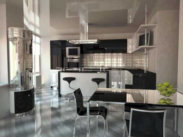 Кухня-студия в стиле хай-тек