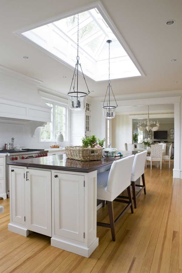 Барные стулья вокруг кухонного острова как элемент загородного стиля