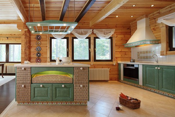 По окончании строительства деревянного дома всегда актуален вопрос выбора дизайна и отделки внутренних помещений. И тут при выборе стиля будущей кухни или кухни-гостиной возникает основная трудность, связанная со спецификой дерева как строительного материала.